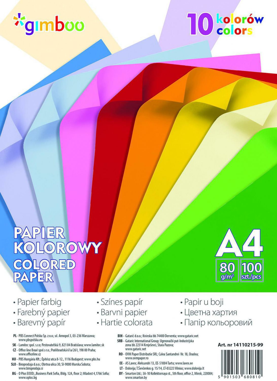 Sada barevných papírů A4, 10 barev/100ks