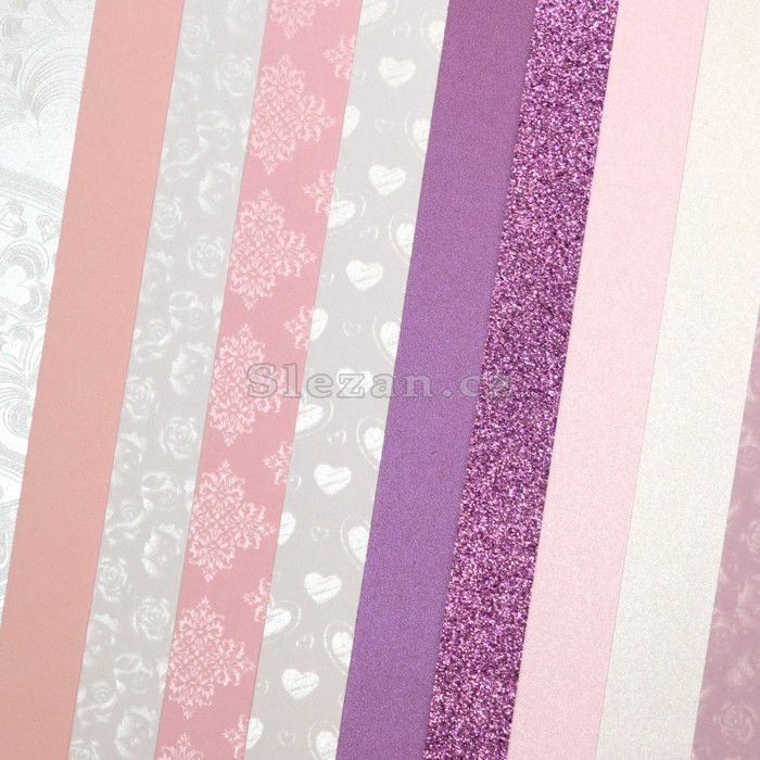 obsahuje 9 ozdobných papírů (perleťových + hladkých) a 1 třpytivý papír
