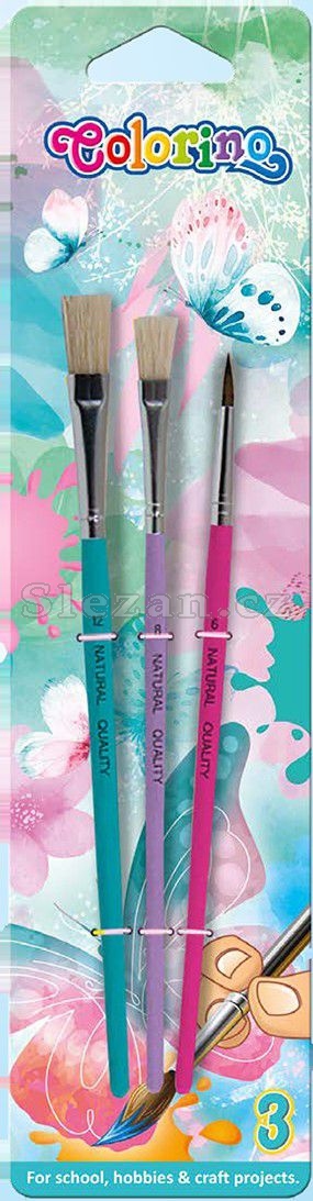 Kvalitní štětce ve 3 velikostech v kulatém i plochém provedení. Barevné plastové násadky.