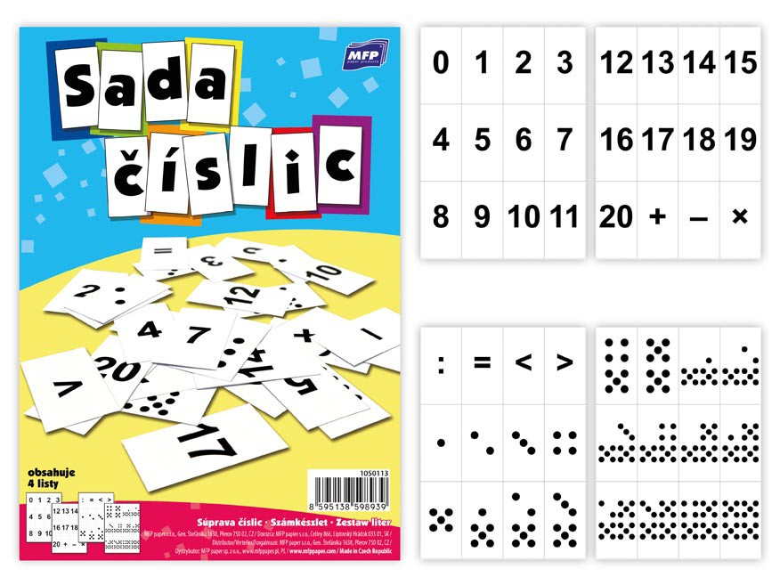 Sada 4 ks tisků ČÍSLICE- slouží k vystřižení jednotlivých číslic, vhodné pro výuku v prvních ročnících základních škol. Školáčci si díky těmto kartičkám procvičí základní matematické počty.