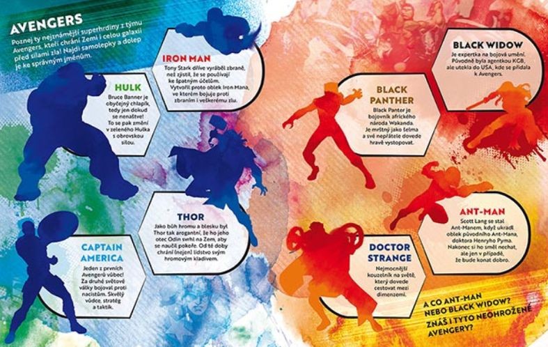 Samolepková knížka obsahuje 16 barevných stran a 8 stran samolepek k dolepení.