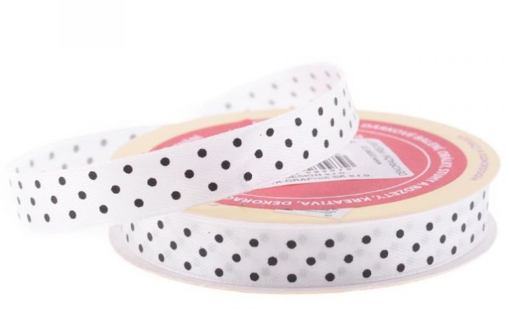 Saténová stuha bílá s puntíkem 12 mm/25m