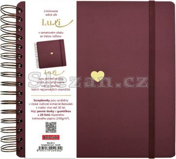 Limitovaná edice scrapbooků se sametovým přebalem v moderní bordó barvě a se zlatým motivem Srdce. Luxi jsou jedinečná alba s krémovým papírem, kroužkovou vazbou a s gumičkou pro všechna Vaše tvoření. Do alba lze vlepovat fotografie nebo si do něj zapisovat všechny Vaše myšlenky. Naše alba jsou nejen krásná na pohled, ale také trvanlivá a připravená stát se součástí Vašich nejcennějších okamžiků. Vytvořte si svou vlastní unikátní sbírku vzpomínek s našimi luxusními scrapbooky.