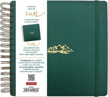 Limitovaná edice scrapbooků se sametovým přebalem v moderní tmavě zelené barvě a se zlatým motivem Hor. Luxi jsou jedinečná alba s krémovým papírem, kroužkovou vazbou a s gumičkou pro všechna Vaše tvoření. Do alba lze vlepovat fotografie nebo si do něj zapisovat všechny Vaše myšlenky. Naše alba jsou nejen krásná na pohled, ale také trvanlivá a připravená stát se součástí Vašich nejcennějších okamžiků. Vytvořte si svou vlastní unikátní sbírku vzpomínek s našimi luxusními scrapbooky.