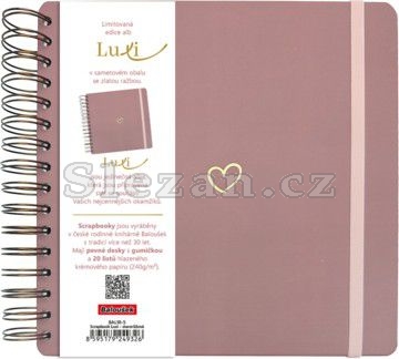 Limitovaná edice scrapbooků se sametovým přebalem v moderní starorůžové barvě a se zlatým motivem Srdíčka. Luxi jsou jedinečná alba s krémovým papírem, kroužkovou vazbou a s gumičkou pro všechna Vaše tvoření. Do alba lze vlepovat fotografie nebo si do něj zapisovat všechny Vaše myšlenky. Naše alba jsou nejen krásná na pohled, ale také trvanlivá a připravená stát se součástí Vašich nejcennějších okamžiků. Vytvořte si svou vlastní unikátní sbírku vzpomínek s našimi luxusními scrapbooky.