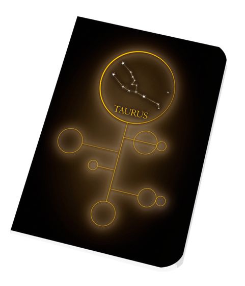 Parciální lak na matné obálce z vysokogramážního papíru podtrhuje decentní motivy dvanácti znamení zvěrokruhu.