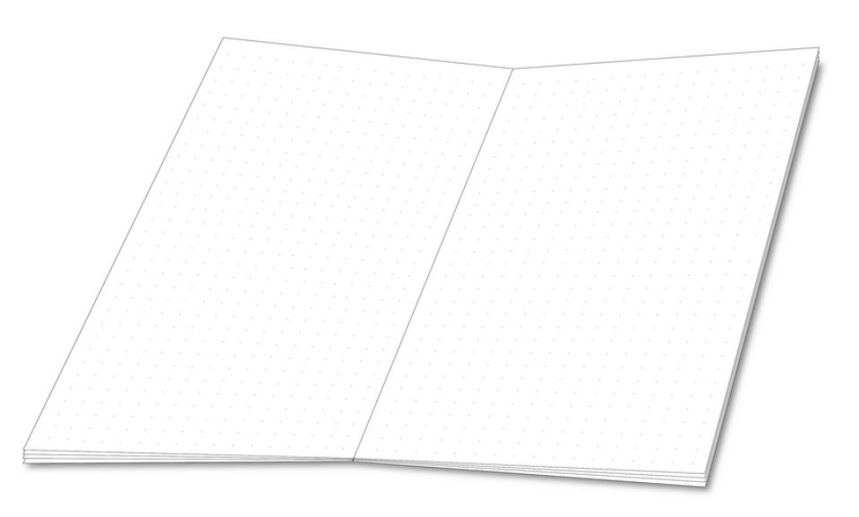 Uprostřed šířky i výšky každé stránky tečkovaného sešitu jsou navíc i malé značky, jejichž spojením můžeme stránku rozdělit na poloviny nebo na čtvrtiny.