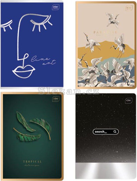 Desky sešitu s módním metalickým efektem a barevný potisk uvnitř dodávají sešitům eleganci.