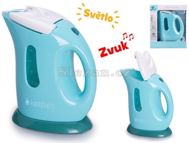 Rychlovarná konvice se světelnými a zvukovými efekty v moderním designu.