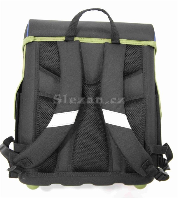 - zadní přihrádka uvnitř aktovky je určena pro těžší předměty ( např. učebnice ), zajistí se tak rovnoměrné rozložení hmotnosti
