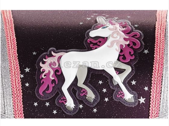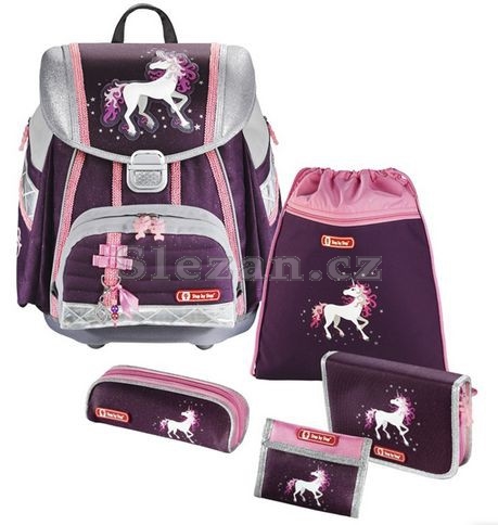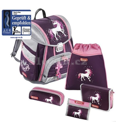 Přehledná jednokomorová aktovka výborně sedí dětem od 1.třídy se standardním vzrůstem. Díky dokonalé ergonomii získala uznávaný německý certifikát AGR. Skelet aktovky je vyroben z polykarbonátu. Ten zaručuje pevnou stabilitu a v podstatě její nezničitelnost. 5dílný set aktovka, plný penál kvalitních pastelek, sáček na přezůvky nebo cvičební úbor, náhradní pouzdro, peněženka