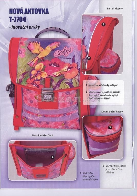 Školní aktovky jsou vhodné pro první nástup do školy, protože jsou vyráběny v souladu s ČSN 796506 a proto se vyznačují pevnou konstrukcí, použitím odlehčených materiálů, bohatým vnitřním členěním, použitím bezpečnostních prvků, ergonomickým zpracováním zádové části a nosných řemenů, moderním designem.