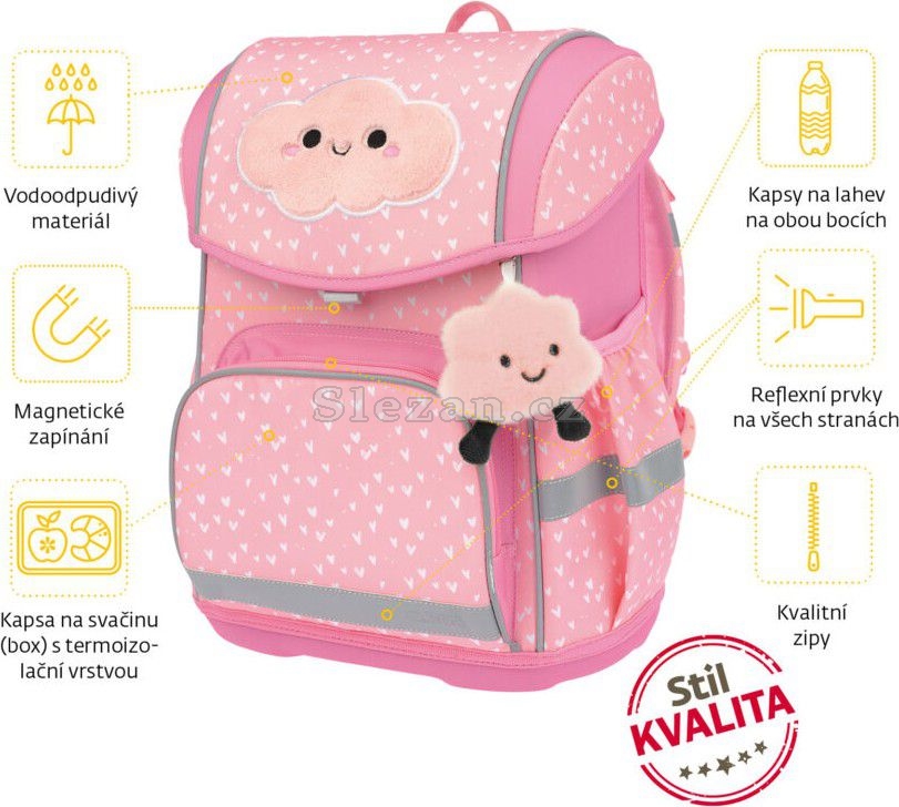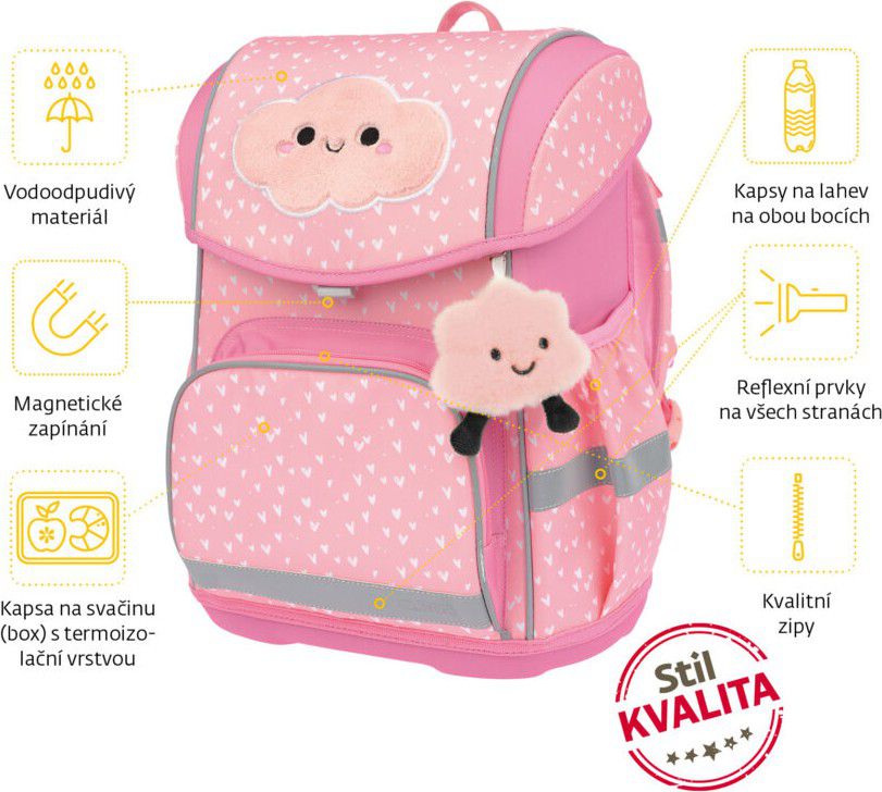 Naše školní aktovky jsou navrženy tak, aby byly nejen praktické, ale i hravé! Letos jsme aktovku obohatili o veselý design s chlupatým přívěskem a aplikací ve tvaru mráčku. Každý den tak může být jiný, zábavný a plný barev!