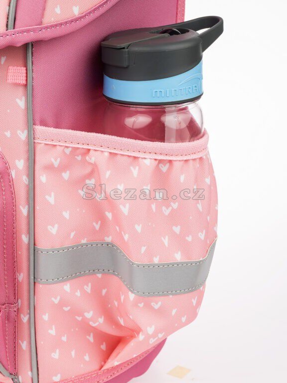 - Po obou stranách batohu se nalézají kapsy na deštník nebo lahev s pitím. Kapsy svým umístěním a elastickými okraji pomáhají eliminovat riziko rozlití nápoje a poničení obsahu aktovky.