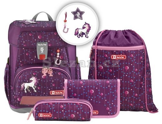Školní aktovka CLOUD pro prvňáčky - 5-dílný set, Step by Step Jednorožec