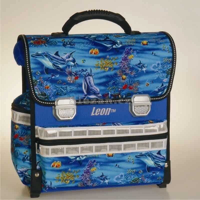 Školní aktovka je vyrobena z nepromokavého nylonového materiálu a zvláště lehkých a pevných umělohmotných lamel.