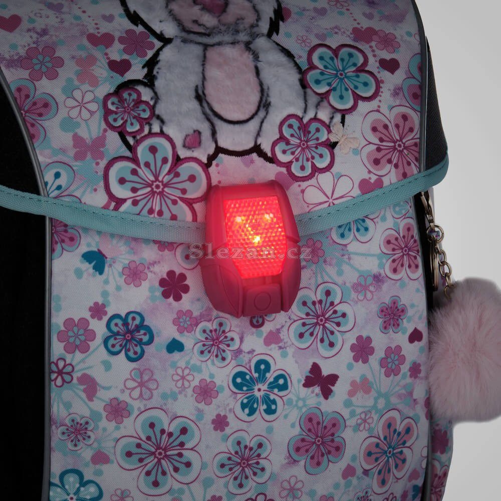 - Klopna uzavíratelná na přezku s blikačkou (baterka uvnitř blikačky) - na vnitřní straně klopny transparentní kapsa na rozvrh