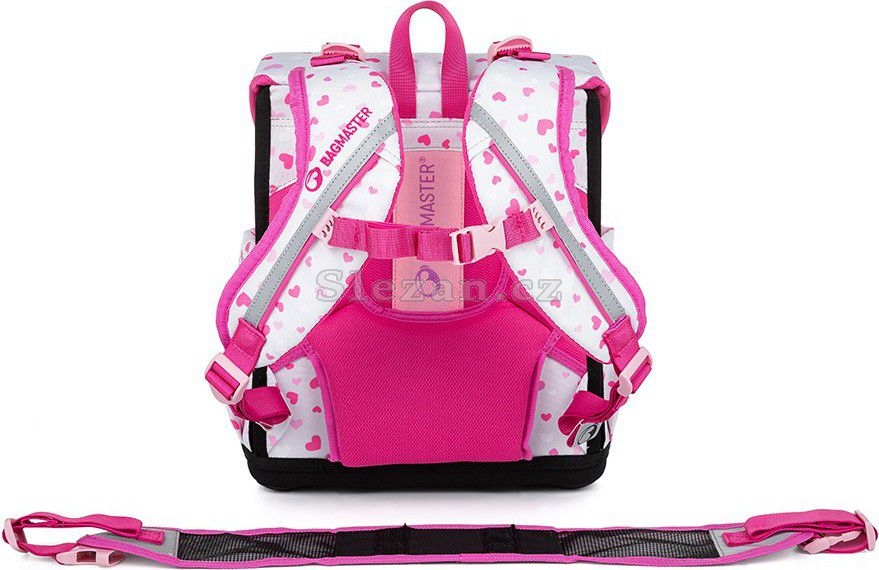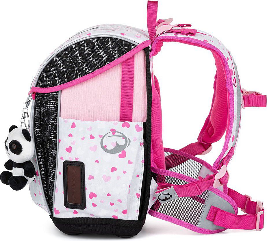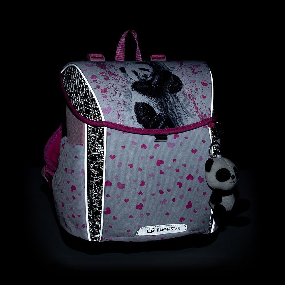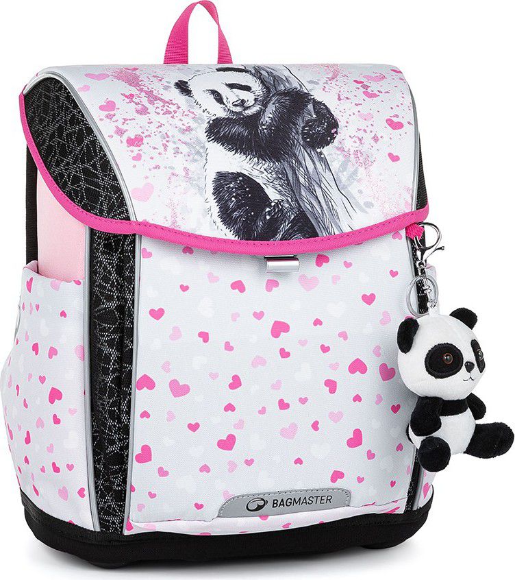 Prima růžovo-šedá aktovka Bagmaster s roztomilou pandou pro všechny drobné školačky do první a druhé třídě