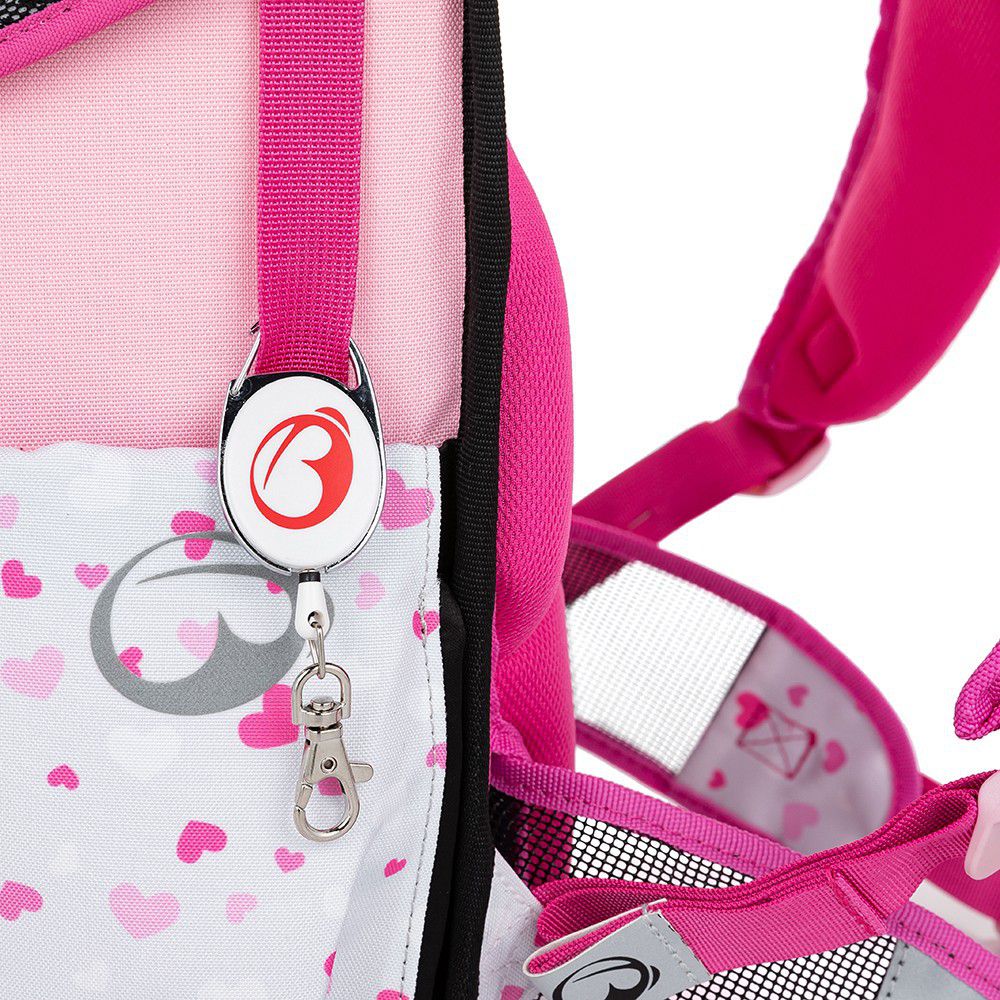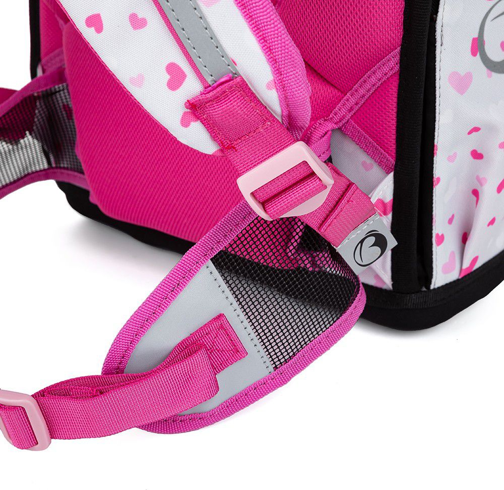Aktovku zdobí dívčí motiv, chlupatý přívěsek a reflexní prvky