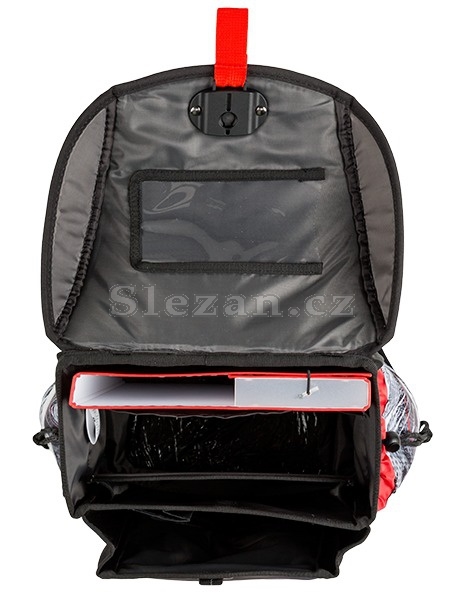 Klopna uzavíratelná na kovovou přezku včetně odrazky - na vnitřní straně klopny transparentní kapsa na rozvrh
