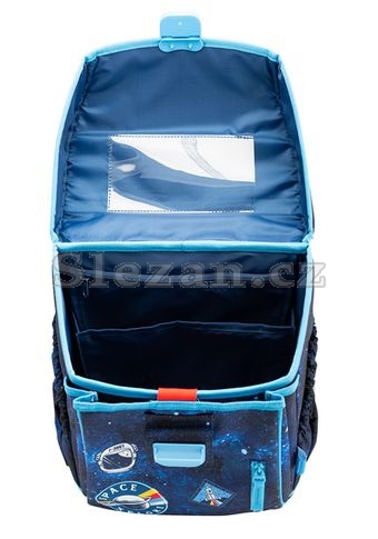 uvnitř hlavní kapsy je malá zipová kapsa na klíče, peněženku, průkazku či jiné osobní věci - ve víku aktovky je fóliová kapsa na rozvrh