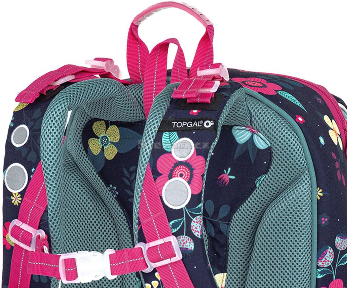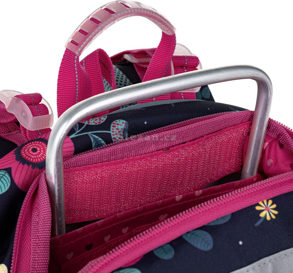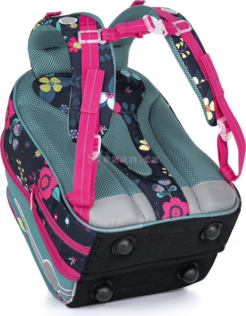 Ramenní popruhy jsou polstrované a rovněž anatomicky tvarované. Na drobná záda vaší školačky aktovku dobře nastavíte díky utahování ramenních popruhů. Nejprve je potřeba je utáhnout dle délky zad v jejich spodní části a poté k ramínkům v horní části popruhů. Dlouhé konce popruhů lze uchytit k tělu popruhu pomocí magnetu, který se nachází v koncích popruhů tak, aby nevlály kolem těla.