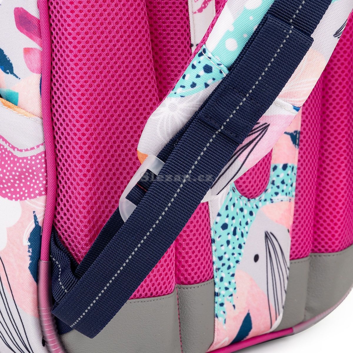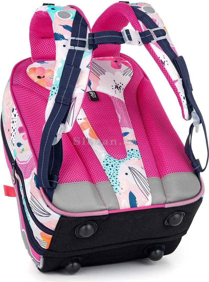 Záda aktovky BEBE jsou polstrovaná, anatomicky tvarovaná a jsou vyztužená lehounkým hliníkovým rámem. Ramenní popruhy jsou taktéž polstrované a anatomicky tvarované. Na drobná záda vaší školačky aktovku dobře nastavíte díky utahování ramenních popruhů. Nejprve je potřeba je utáhnout dle délky zad v jejich spodní části a poté k ramínkům v horní části popruhů. Dlouhé konce popruhů uchytíte k tělu popruhu pomocí magnetu, který se nachází v koncích popruhů.