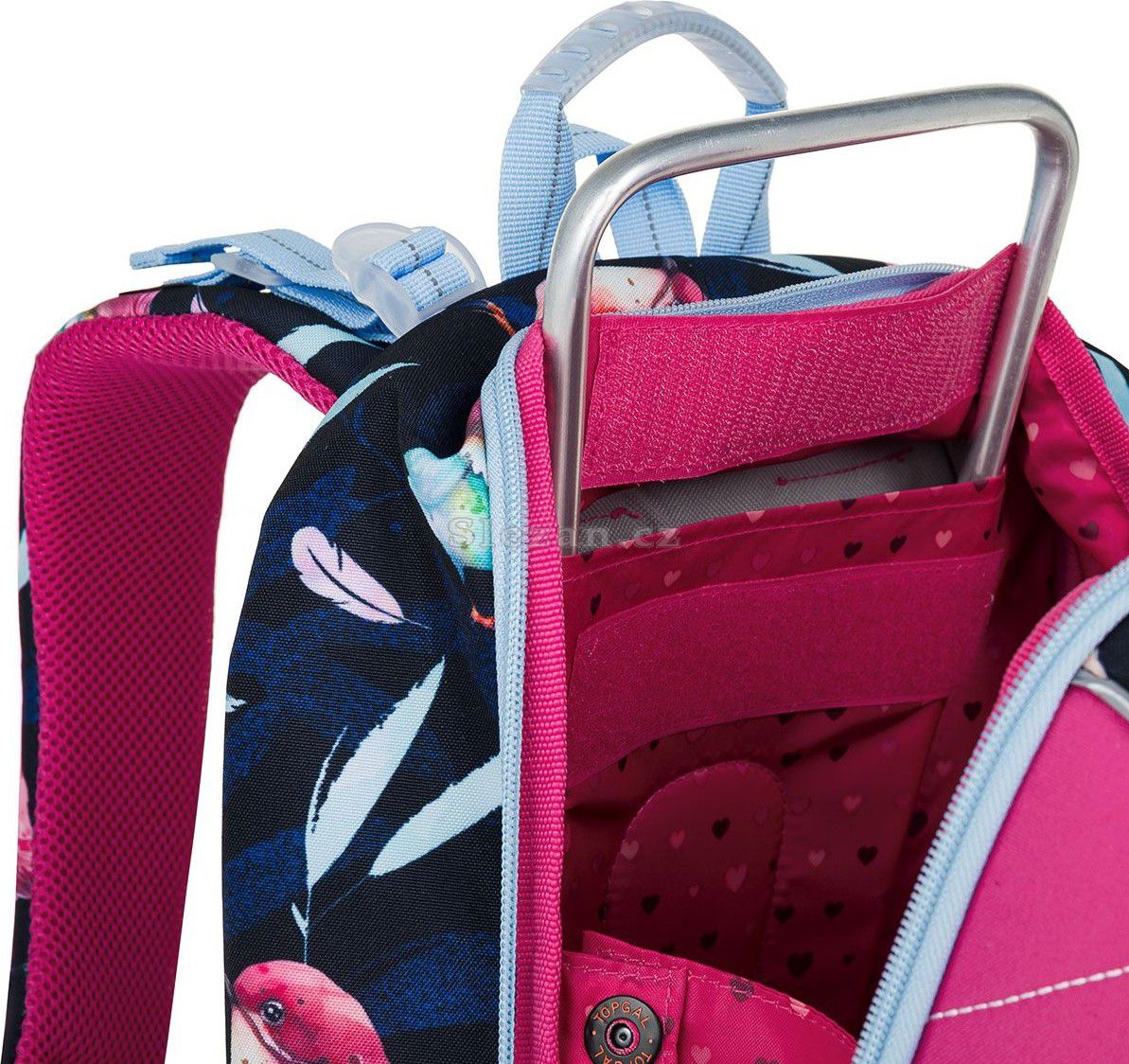 Model BEBE je kompromis mezi aktovkou a školním batohem, který je vhodný pro malé slečny s výškou 110 cm. Roztomilé malé vrabčáky doplní plyšový přívěsek ve tvaru srdce.