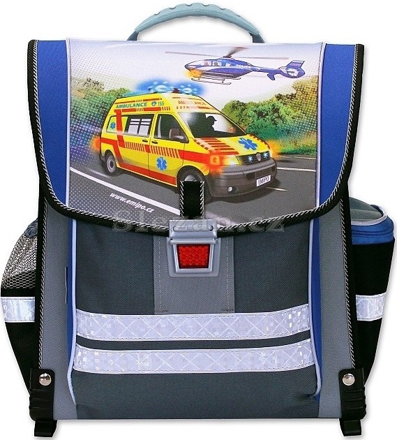 Vnitřní část tvoří jedna velká komora, která je rozčleněna pohyblivou přepážkou na dvě části. Přepážka zajišťuje větší variabilitu pro vnitřní uspořádání jednotlivých školních pomůcek podle individuální potřeby žáka. Na této přepážce jsou našita dvě větší gumová poutka. Jedno velké je i v zadní části. Na předním dílu je našita větší otevřená kapsa uzavíratelná poutkem na suchý zip. V horní části je přišita síťovaná kapsička na drobné věci. Aktovku uzavírá klopna upevněná na zadním dílu přes textilní pant. Ten umožňuje po otevření zůstat klopně v zadní poloze. Klopna zakrývá celou hlavní komoru včetně přední kapsy tak, aby se za deště do těchto prostor nedostala žádná vlhkost. Tomu napomáhá i vodoodpudivá úpravy použitých textilií. Na vnitřní straně klopny je týdenní rozvrh hodin se jmenovkou. Klopna je zajištěna proti otevření zámkem s reflexní odrazkou (reflektorem). Zámek jde jednoduše otevřít jednou rukou, když pod něj zasuneme dva prsty a palcem zatlačíme na reflektor s následným pohybem směrem nahoru. Zádovou část tvoří anatomicky tvarovaný díl, který je vyráběn prostorovým tvarováním z objemově pevnějších elastomerů s textilií na jejich povrchu, jako je to např. u sedadel sportovních aut. Systém podélných kanálků zajišťuje odvětrávání zádové části. Tvar a tuhost jsou nastaveny tak, aby se neprotláčel obsah aktovky do zad školáka a aby držel správnou polohu páteře, tzv. aby seděl dobře na zádech. Zádový díl a nosné dno jsou pevně spojeny, takže batoh drží tvar i při plném zatížení. Široké polstrované řemeny umožňují pohodlné nošení i velkého objemu školních pomůcek. V horní části mezi řemeny je všité poutko na zavěšení batohu na lavici a držadlo pro nesení batohu v ruce. Jejich určení nezaměňovat! Na bocích jsou kapsy. Z části síťovaná má v horní části všitou gumu a je určena pro uložení lahve na pití. Druhá na zip je určena pro další drobné školní pomůcky. Reflexní prvky jsou jak na předním dílu, tak na nosných řemenech a i po obou stranách na bočních kapsách. Dolní část batohu je opatřena ochrannými plastovými rohy, které mimo jiného, umožňují dlouhodobé stání aktovky na mokré podložce, aniž by hrozilo znehodnocení jejího obsahu.