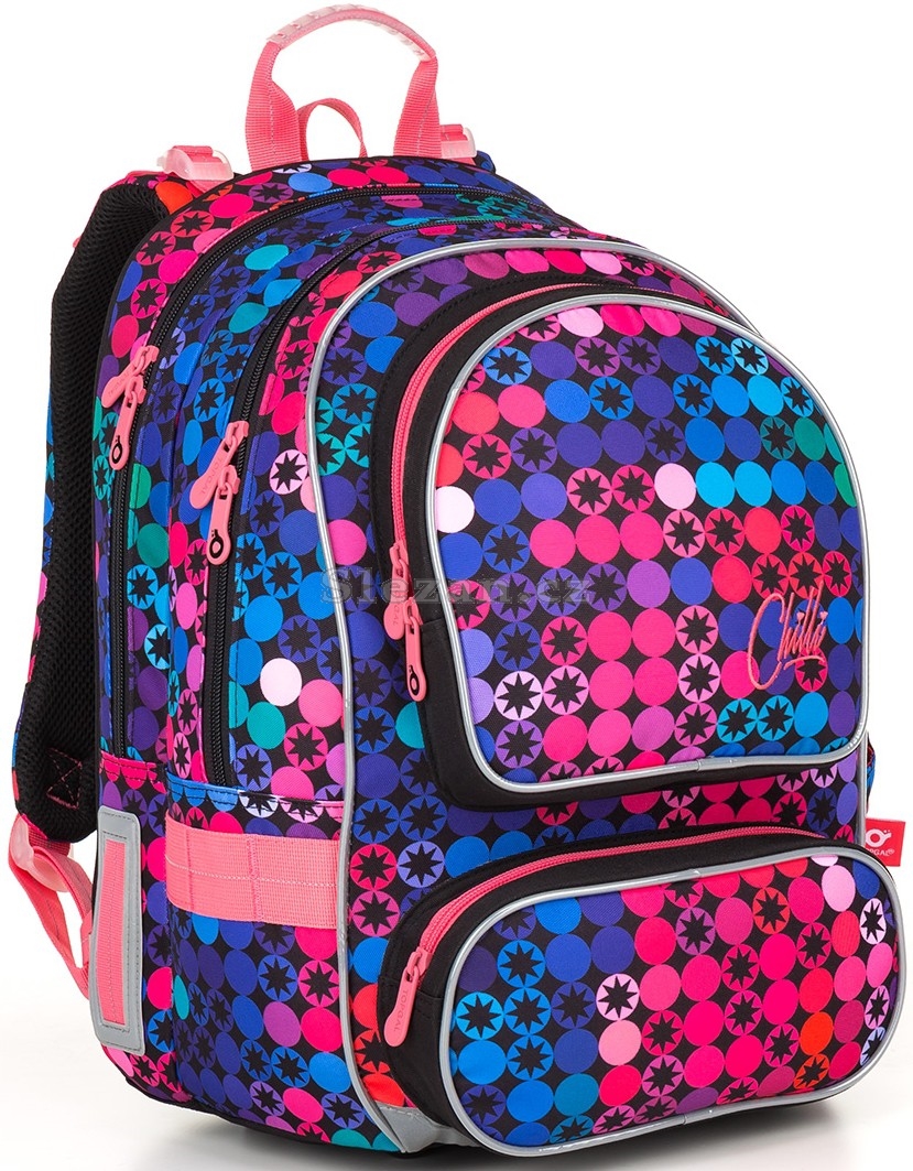 Batoh tradičního oblíbeného střihu se zcela novým designem s puntíky a hvězdičkami je ideálním parťákem do školy pro malé slečny od druhé třídy výše. Pokud je ale vaše dcera vyšší postavy, chystá se do první třídy a touží po něm, neměl by být problém!