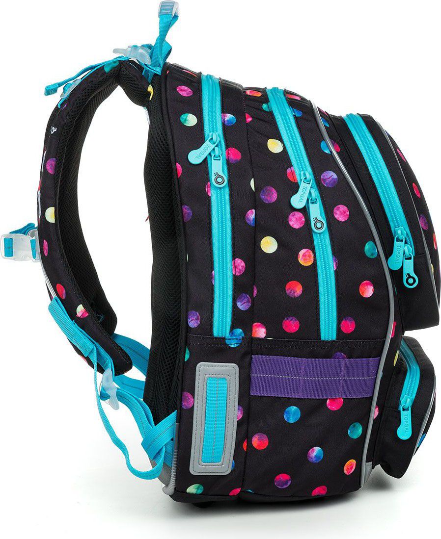 Oblíbený dvoukomorový střih batohu, s dvěma předními kapsičkami, ocení všechny dívky od 2.třídy výše. Pokud se ale vaše dcera chystá do první třídy, má nad 120 cm a líbí se jí, klidně jej může mít! Navíc, puntíky nikdy nevyšly z módy!