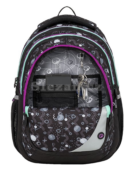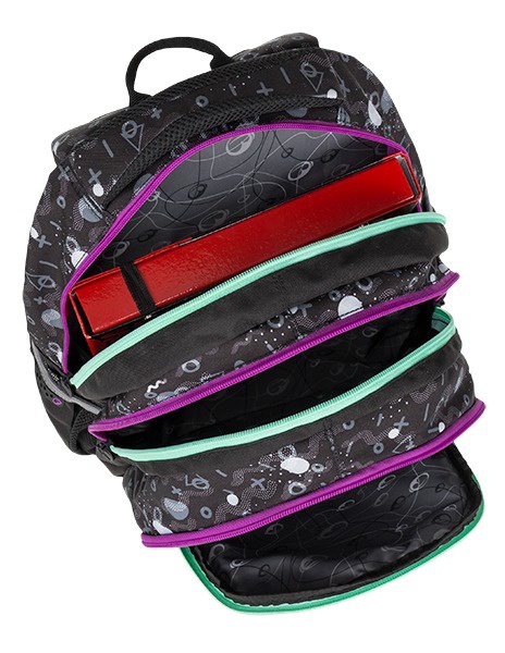 Detailní popis MAXVELL: Hlavní komora je velmi prostorná, pohodlně se do ní vejdou např. školní desky i učebnice formátu A4. Uvnitř komory separační kapsa na gumu, vhodná na učebnice nebo desky.