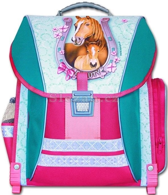 Školní batoh je uzavírám prostorově tvarovanou klopnou přes celý svůj obvod, včetně přední kapsy.