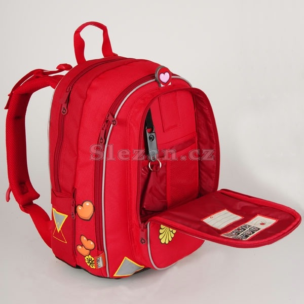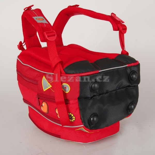 Zcela jedinečný školní batoh s organizérem rozdělujícím prostřední komoru - výborná orientace ve vnitřím prostoru batohu. Záda polstrovaná, vyztužená hliníkovým rámem. Nastavitelné ramenní popruhy pro přizpůsobení výšce dítěte. Prostorná střední komora je elegantně rozdělena vnitřním organizérem. Menší zadní komora, vpředu je další, velká a hluboká kapsa s organizérem, jmenovkou a karabinkou na klíče. Na bocích dvě nápaditě řešené postranní kapsy ze síťoviny, které lze úplně schovat do batohu. Odolné dno s plastovými nožkami. Na ramenním popruhu clip pro PET láhev. Madlo v plastovém krytu. Součástí je prodyšný pytlík na přezůvky a speciální reflexní pláštěnka na batoh. Samozřejmostí je použítí mnoha reflexních prvků pro zvýšení bezpečnosti.