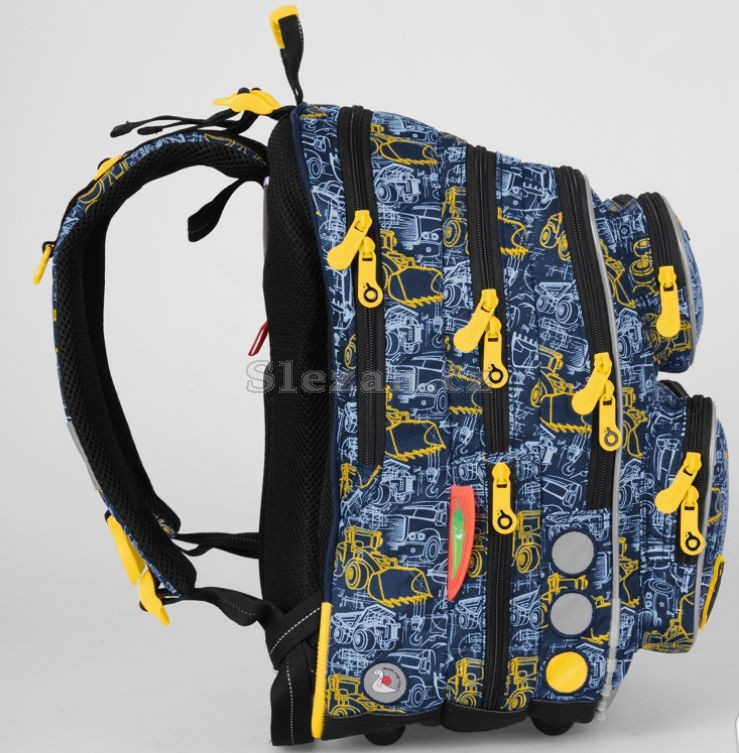 V horní kapsičce je jednoduchá karabina na klíče. Spodní a větší kapsa je určena pro uložení boxu na svačinu nebo školního pouzdra CHI 690 se stejným motivem (není součástí batohu). Na této kapse je plastová napodobenina bagru nebo sklápěčky. Na jedné straně batohu je menší elastická kapsa na 1l láhev s pitím. Druhá, menší postranní kapsa obsahuje poutko s karabinou, na kterou je možné zavěsit pytlík na přezůvky, nebo si lze do kapsy uschovat jiné drobnosti. Batoh je doplněn o četné reflexní plochy pro zvýšení bezpečnosti dítěte za každých povětrnostních podmínek.