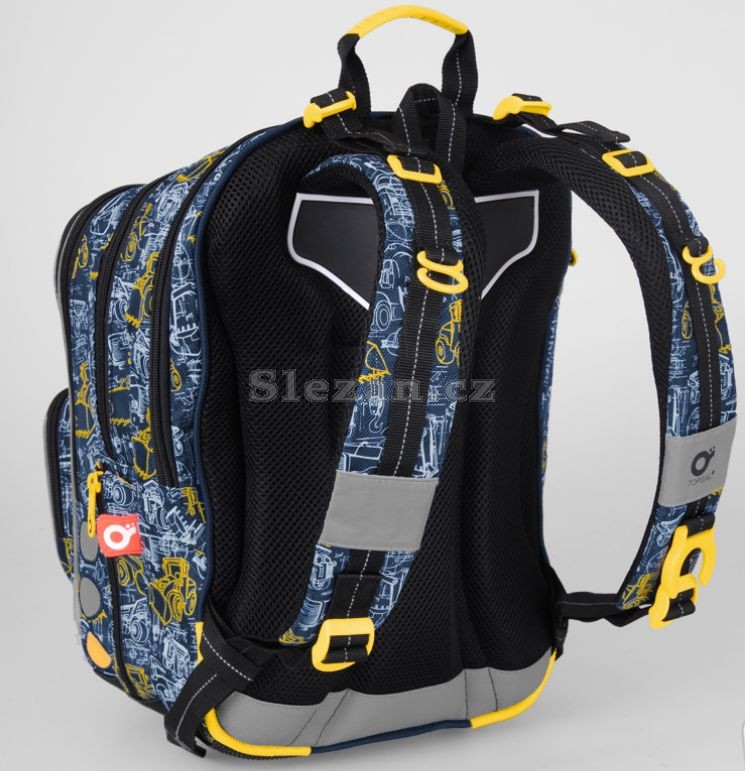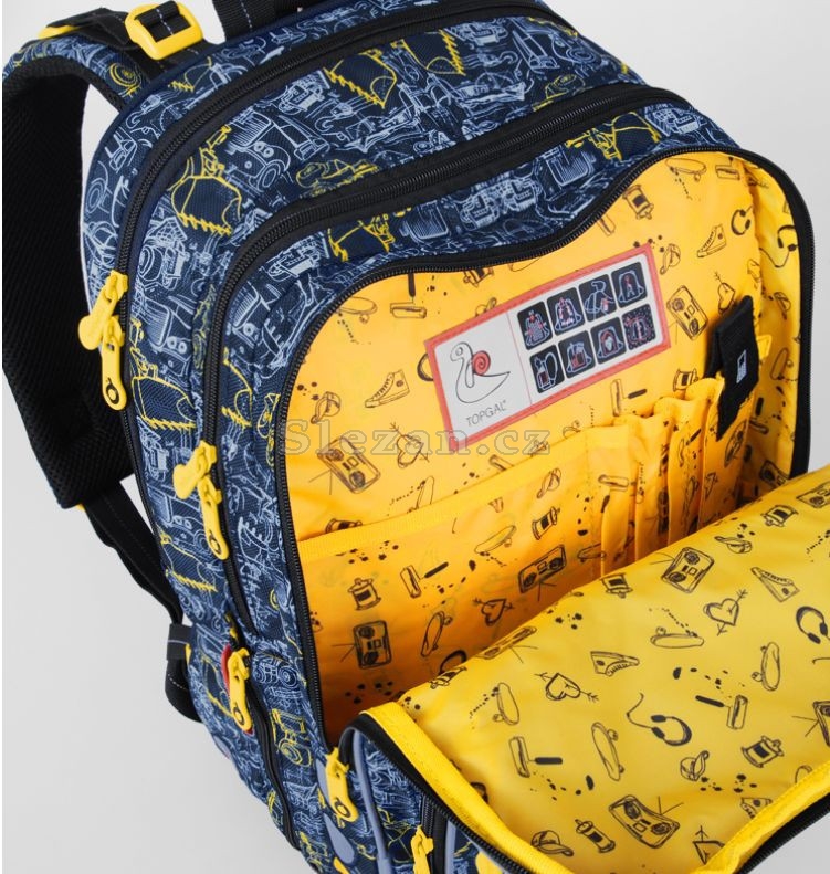 Klasický tříkomorový školní batoh s hravým designem pro nejmenší školáky v 1. až 3. třídě.