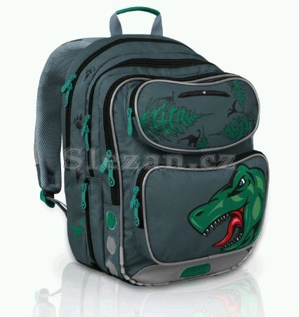 Klasický tříkomorový školní batohy s dino motivem pro nejmenší školáky v 1. až 3. třídě.