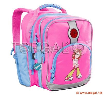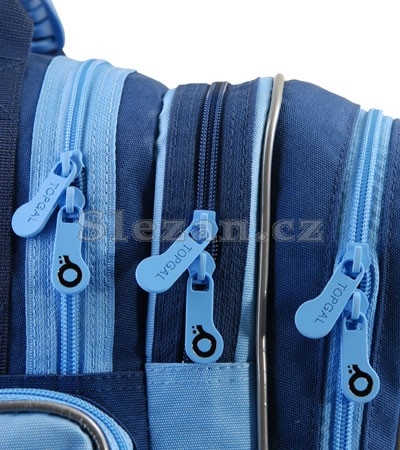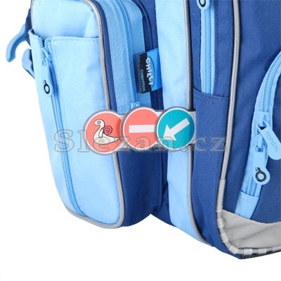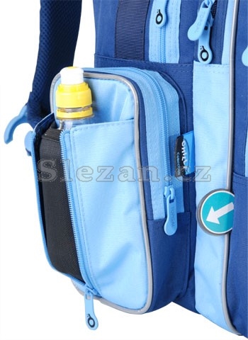 Tříkomorový školní batoh. Zadní část je vyrobena z lisované, tvrzené pěny, popruhy jsou anatomické, polstrované a nastavitelné. Ručka je opatřena gumovým držadlem. Velká zadní komora je opatřena vyjímatelnou destičkou na vyztužení dna. Přední komora (je stejně velká jako prostřední) je opatřena kapsami a klíčenkou. Na přední straně je kapsa se štítkem na jméno a nad ní červená odrazka. Po stranách jsou uzavíratelné, prostorné kapsy. Spodní část je vyrobena ze silného materiálu, je opatřena plastikovými nožkami a je polstrovaná. Batoh je opatřen reflexními prvky pro zvýšení pasivní bezpečnosti.