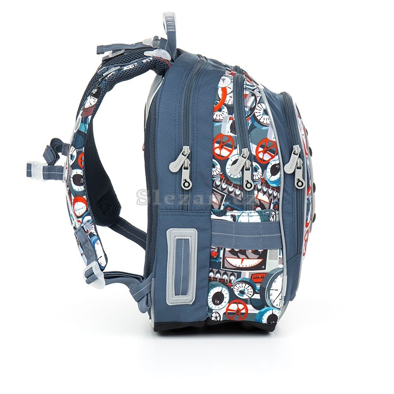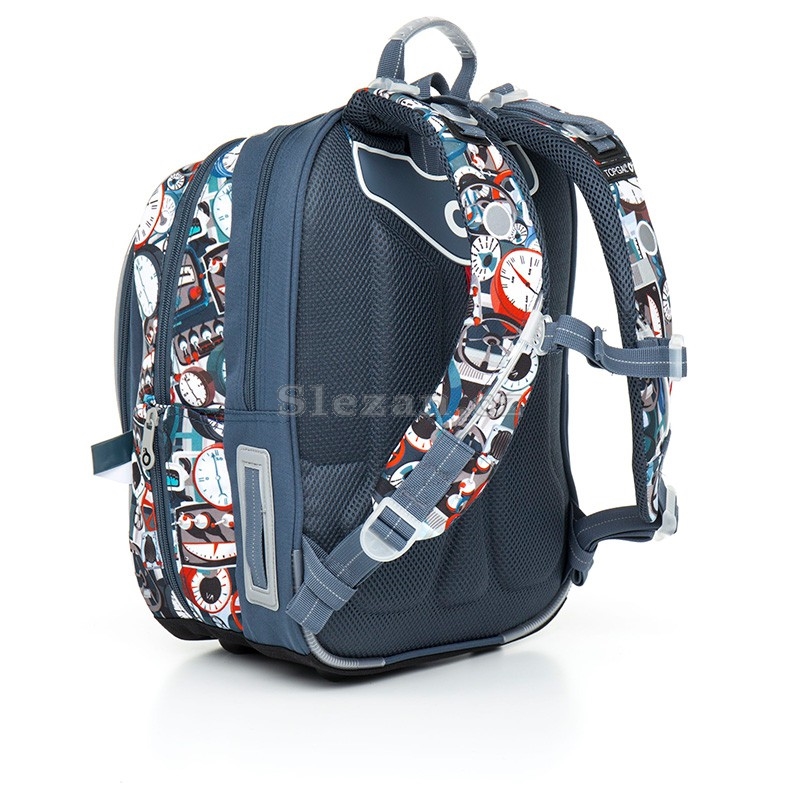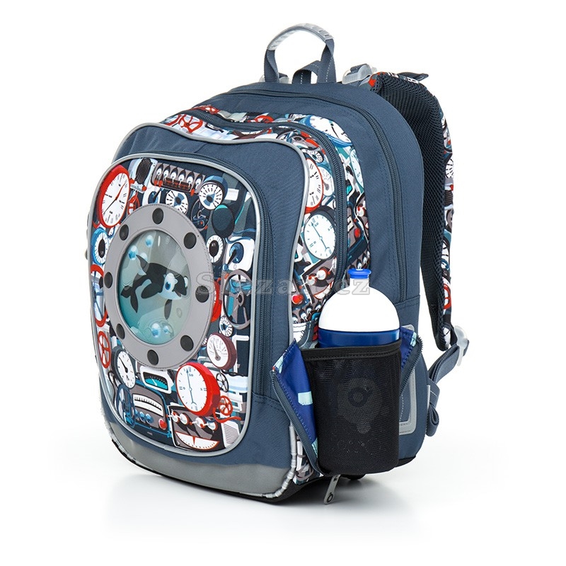 Modrý školní batoh pro nejmenší školáky s měnitelným 3D obrázkem mořského zvířátka. Batoh má lisovaný typ zádového systému bez hliníkové konstrukce, což spolu s menšími rozměry batohu snižuje jeho váhu na minimum. Našim nejmenším je také přizpůsobené jednoduché řešení kapes – batoh má dvě komory a jednu přední kapsu. V přední komoře najdeme kapsičku na drobnosti a jmenovku, v přední kapse karabinu na klíče. Elastická kapsa na pití je prakticky uložená na boční straně batohu, takže následky nehod nebudou fatální. Použité reflexní materiály zajistí bezpečnost, ergonomické řešení ramenních popruhů zdravotní nezávadnost. Průzkumná cesta do hlubin školákovi duše začíná!