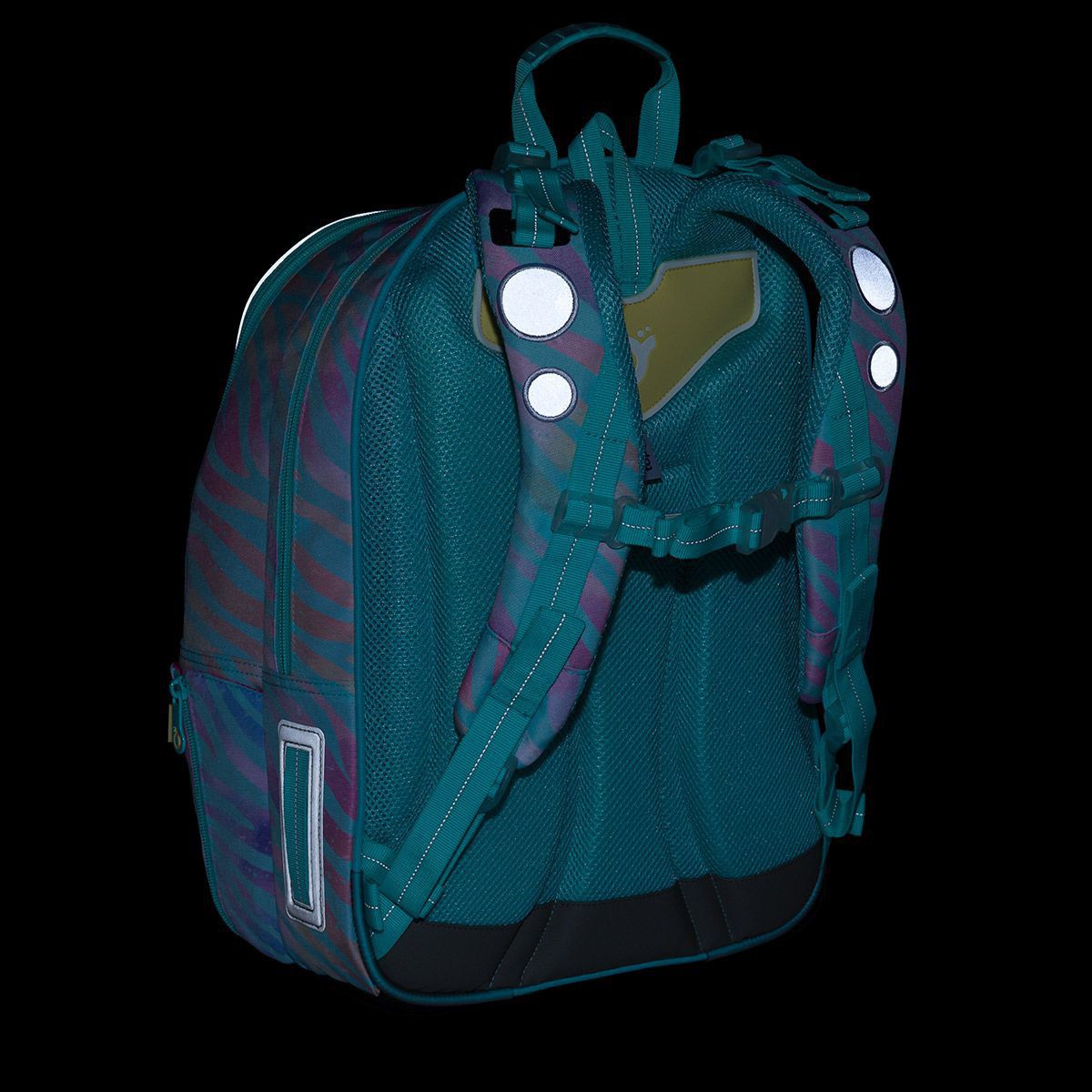 - reflexní prvky: na čele a bocích batohu, na ramenních popruzích