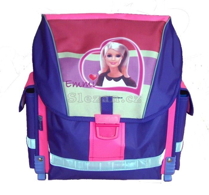 Vnitřní část školního batohu je členěna pohyblivou přepážkou na dvě části. Její plynule měnitelná poloha umožňuje větší variabilitu vnitřního uspořádání a tím i uložení jednotlivých pomůcek (sešitů, knih apod.) podle individuální potřeby žáka. . Na této přepážce je našita členěná kapsa ze síťoviny pro uložení např. sešitů formátu A5, žákovské knížky, mobilu, hygienických kapesníčků apod. Dále je tam našito poutko s plastovým oválkem pro zavěšení svazku klíčů. Horní obvod této vnitřní části je opatřen stahovací šňůrkou s brzdičkou. Toto řešení umožňuje měnit velikost celkového objemu vnitřní části školního batohu, podle vkládaného množství učebních pomůcek. Na předním dílu je našita velká kapsa rozměru š.250 x h.50 x v.230mm. V horní části je uzavíratelná na zip. Ve střední části je volně našit pás textilu, na kterém je uchycen dolní díl zámku batohu. Toto jedinečné řešení umožňuje otevřít zámek jednou rukou! Přes celou šířku přední kapsy a přes obě boční kapsy je našit bezpečnostní reflexní pásek. Školní batoh je uzavírám prostorově tvarovanou klopnou přes celý svůj obvod, včetně přední kapsy. Tím je chráněn obsah před znehodnocením při deštivém počasí. Na vnitřní části klopny je našita plastová kapsička s týdenním rozvrhem hodin a jmenovkou. Zadní část batohu je opatřena anatomicky tvarovanými zády vyrobenými z gumové pěny na povrchu potažené bavlněnou textilií. Jejich tuhost je nastavena tak, aby se jednak neprotláčel obsah batohu do zad školáka a také aby tzv. seděla na zádech a držela správnou polohu páteře. Dolní část batohu je opatřena ochrannými plastovými rohy, které mimo jiného, umožňují dlouhodobé stání aktovky na mokré podložce, aniž by hrozilo znehodnocení jejího obsahu. Při celkových rozměrech š.320 x h.200 x v.380mm váží batoh pouhých 0,96kg! Tímto Vám nabízíme extra lehký školní batoh s pevnou konstrukcí a užitnými vlastnostmi školní aktovky