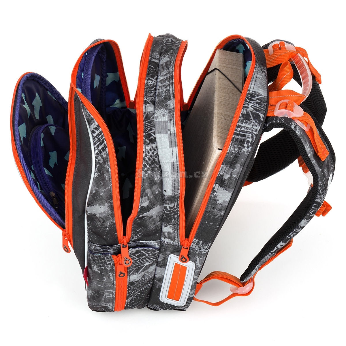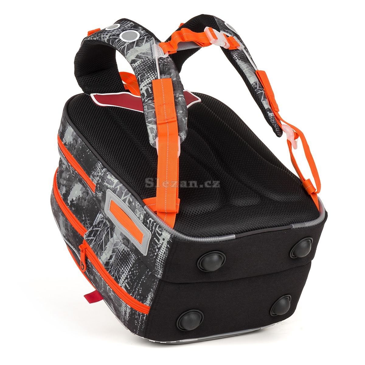 Vytuněný batoh pro všechny malé závodníky určitě ocení nejen milovníci gamesek s auty, ale díky váze batohu i jejich rodiče! Zádový systém je díky anatomicky tvarované lisované pěně ultralehký, a tak je celková váha batohu menší než jeden kilogram. I na zádech malého závodníka bude batůžek sedět jako ulitý. Ramenní popruhy jsou totiž ergonomicky tvarované a hlavně – dají se utáhnout v horní i spodní části batohu. Výškově nastavitelný hrudní pásek zajistí, že popruhy nebudou sjíždět ani z drobných zádíček.
