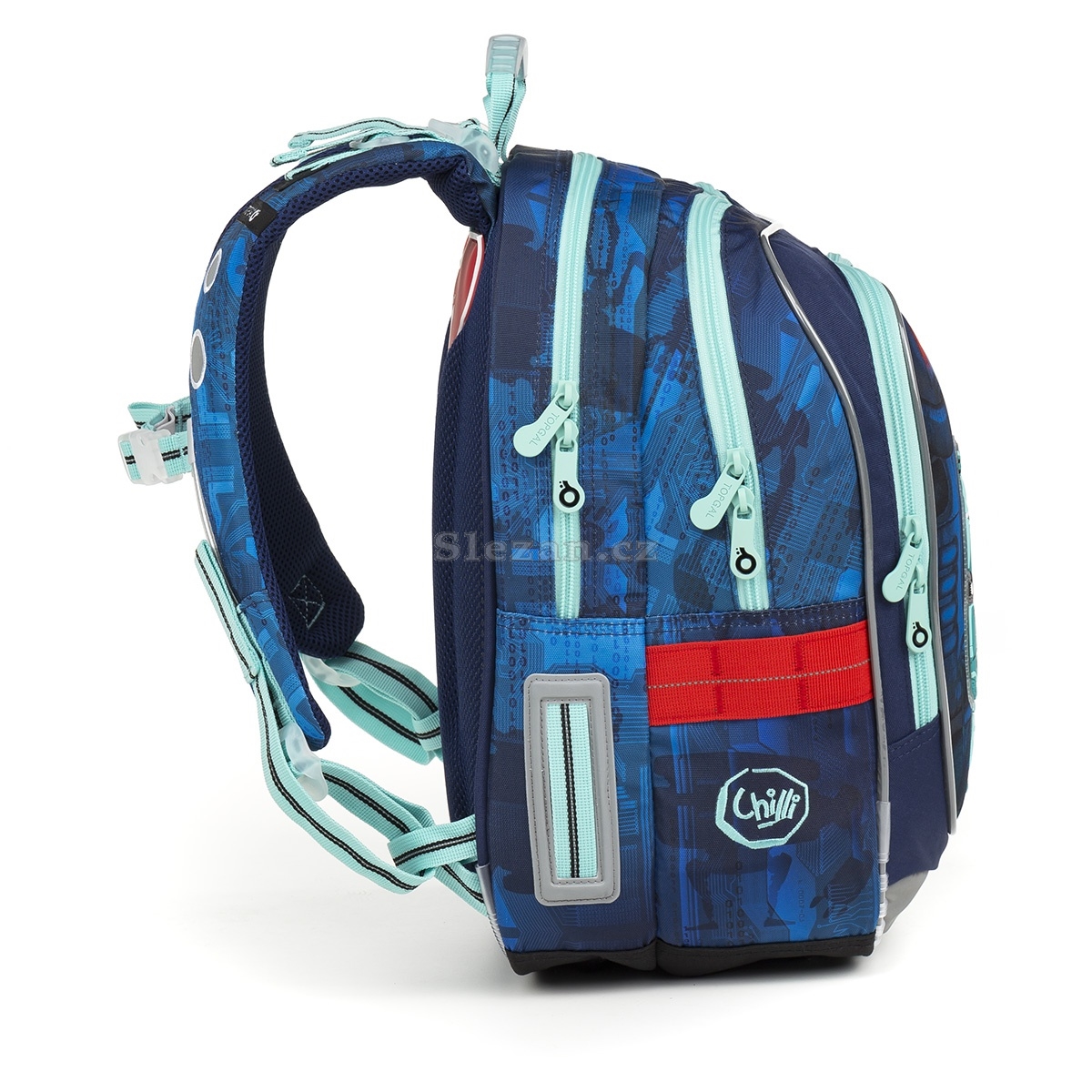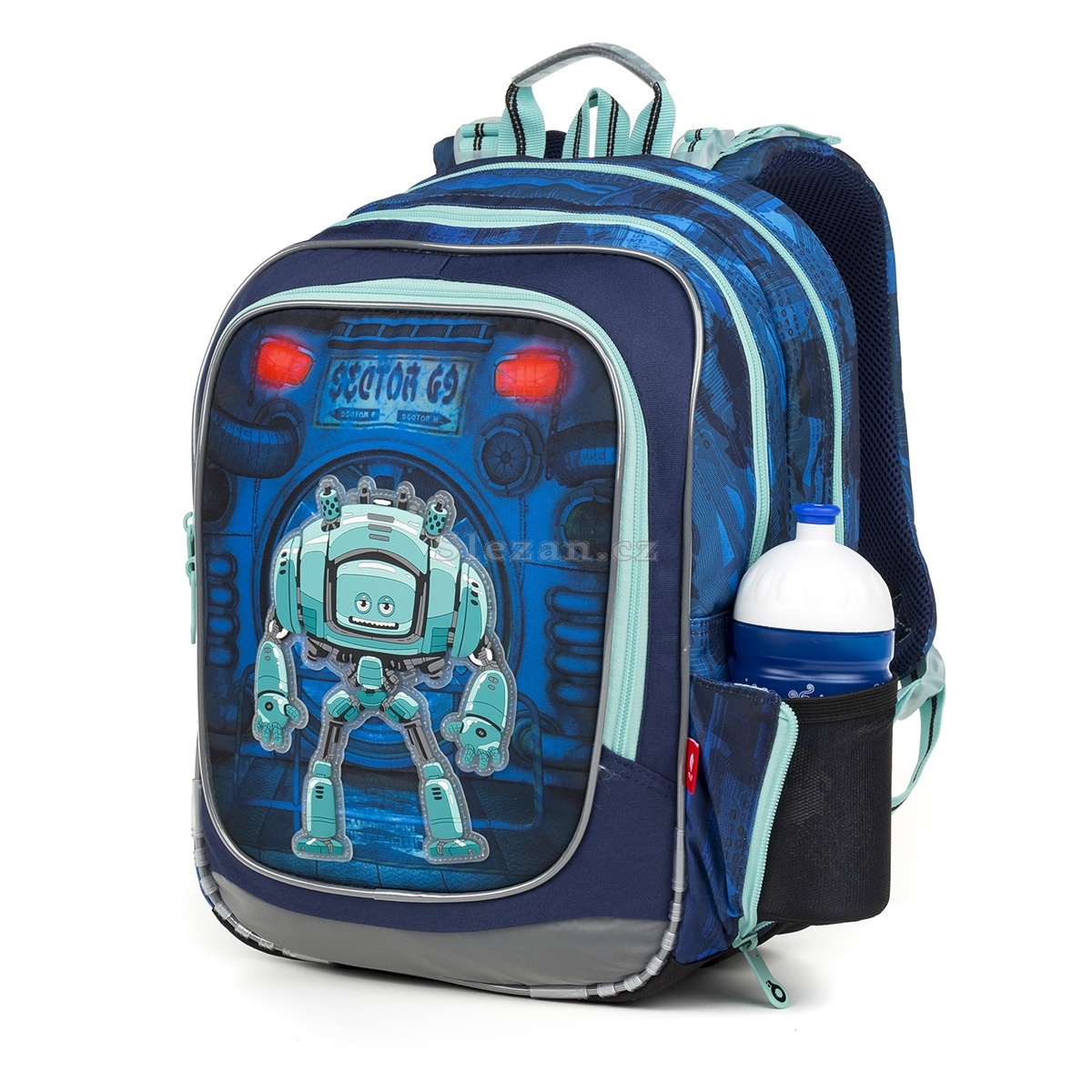 - Školní batoh pro malé milovníky robotů! Dvě komory pojmou všechno učivo potřebné minimálně v prvních třech ročnících ZŠ. Přední hlubokou kapsu s plastovou aplikací robota určitě využijí všichni kluci na drobnější poklady, které s sebou ve škole nutně musí mít.