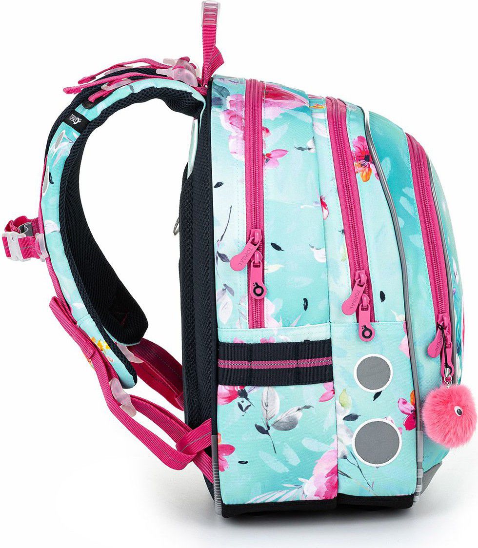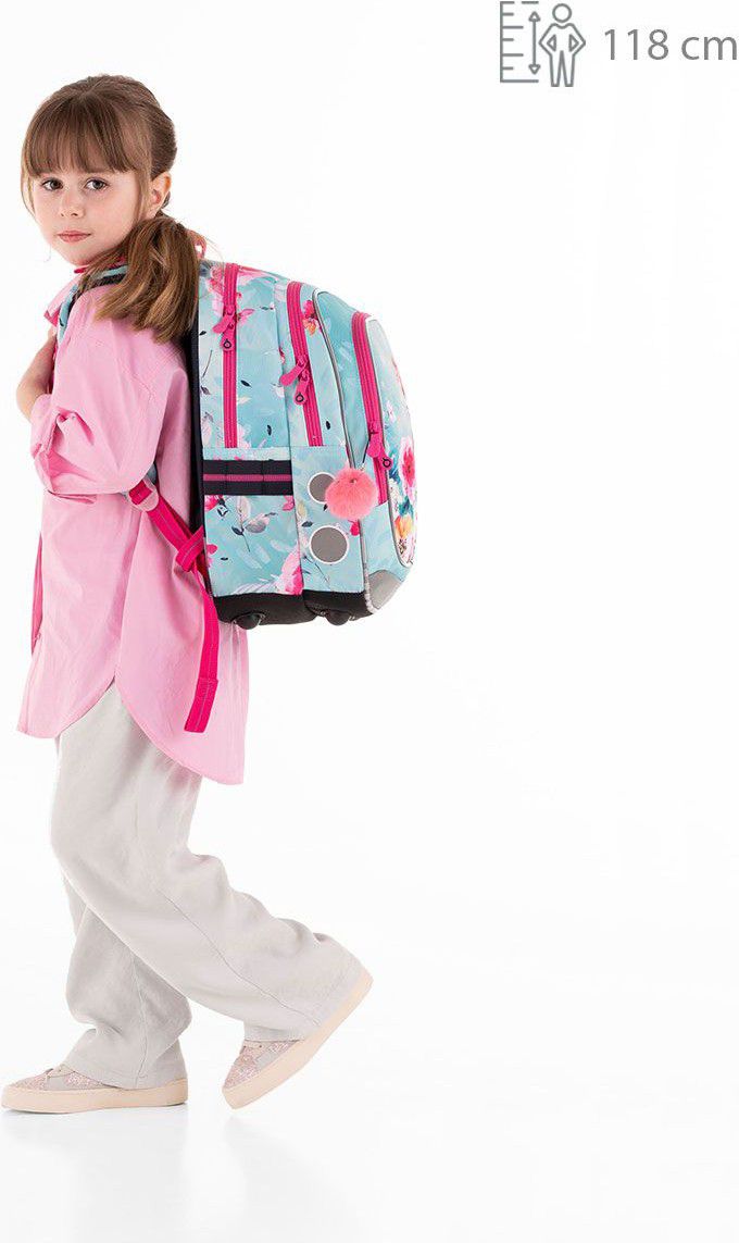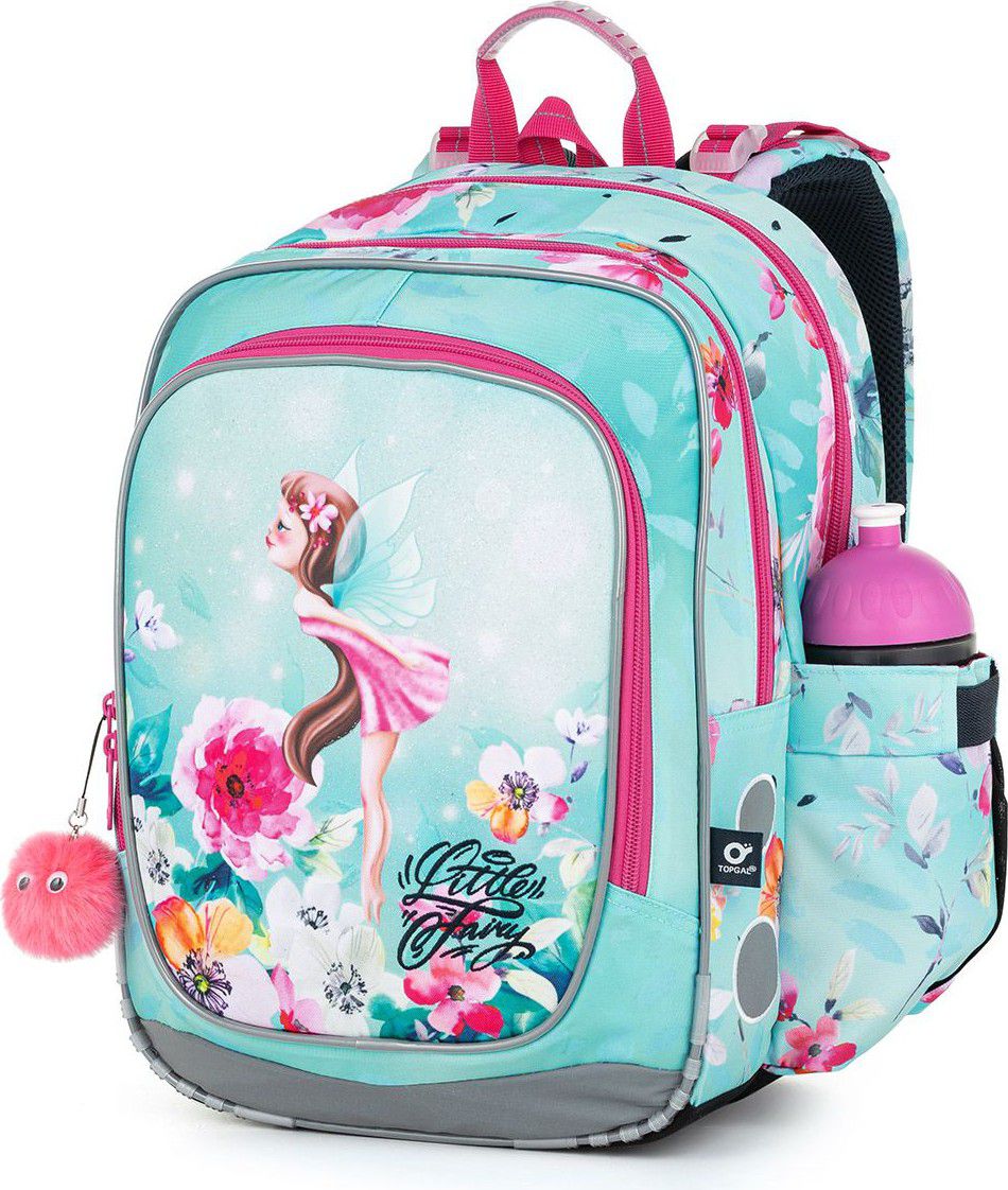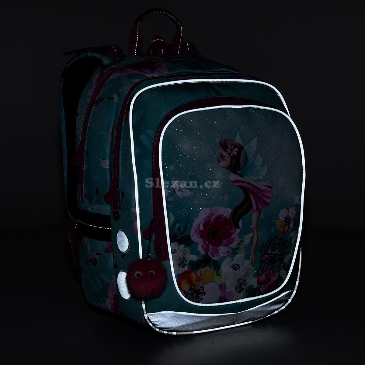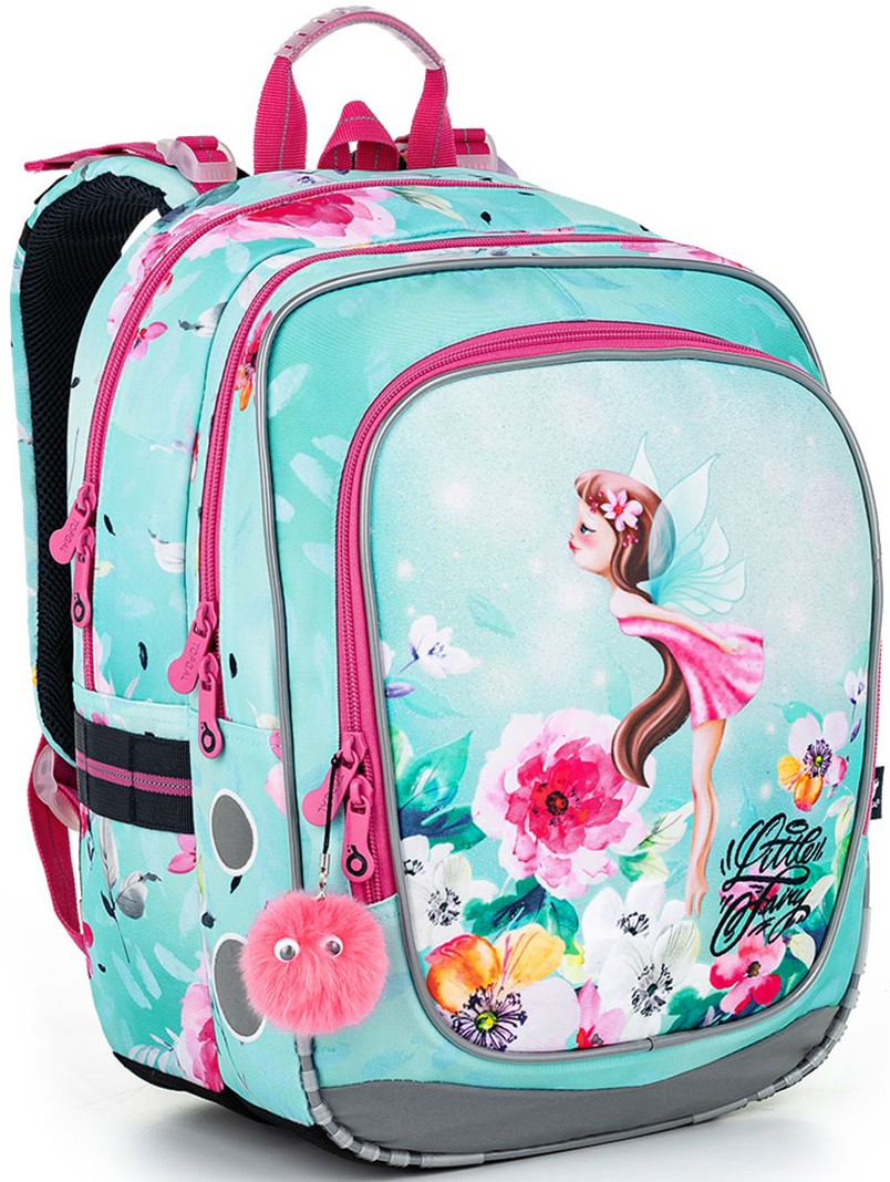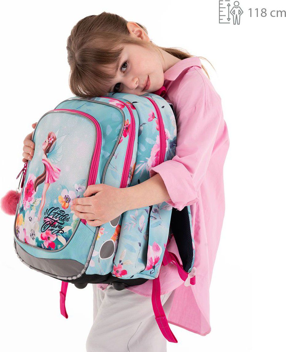 - Třpytivý lehký batoh s vílou a chlupatým přívěskem je ideální do prvních školních let. Konstrukce batohu je díky pevným lisovaným zádům velmi lehká, proto jej můžeme doporučit i pro drobné slečny pod 120 cm. Objemem ale určitě vydrží nejméně od první do třetí třídy ZŠ.
