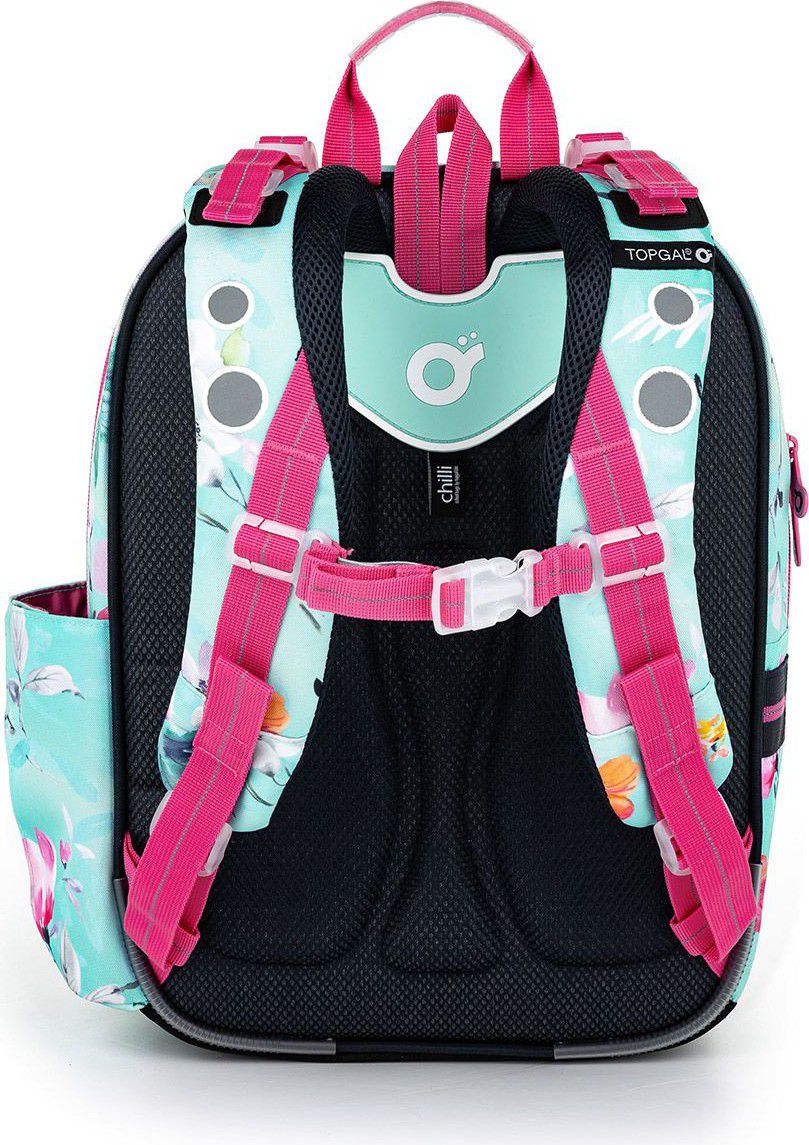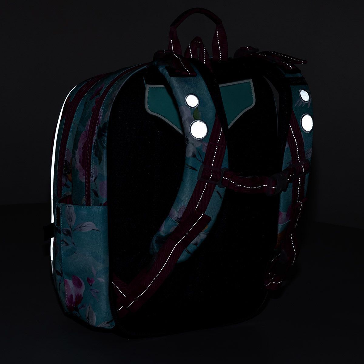 - Pití je dobré umístit do kapsy na bok batohu. I víly musejí být vidět, zvláště v zimním období, proto jsme batoh opatřili řadou reflexních prvků. Najdete je na čele a boku batohu, ale i na ramenních popruzích.