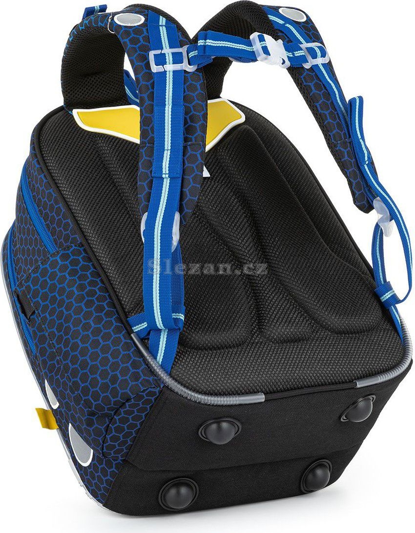 Výškově nastavitelný hrudní pásek zajistí, že popruhy nebudou sjíždět ani z drobných zad. Nejtěžší školní potřeby dávejte vždy co nejblíže zádům do zadní komory. Ta je širší než přední komora a pojme vše potřebné do prvních tříd ZŠ. Přední, užší komora, unese vše ostatní a navíc v ní určitě využijete praktickou síťovou kapsu na zip. Jmenovka nad síťovou kapsičkou pomůže batohy rozeznat, i když se ve třídě sejdou dva stejné batohy.