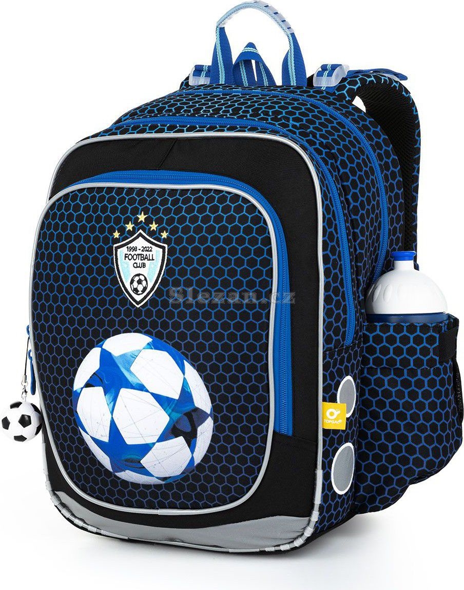Fotbalisté, jste připraveni na školní zápas s učením? Co takhle se vyzbrojit tímhle super lehkým batohem s motivem fotbalového míče? Díky tomu, že batoh neváží ani kilo, se bude zamlouvat určitě i rodičům. A navíc nášivka na přední kapse a přívěsek s míčem, líbí?