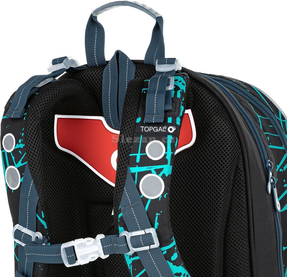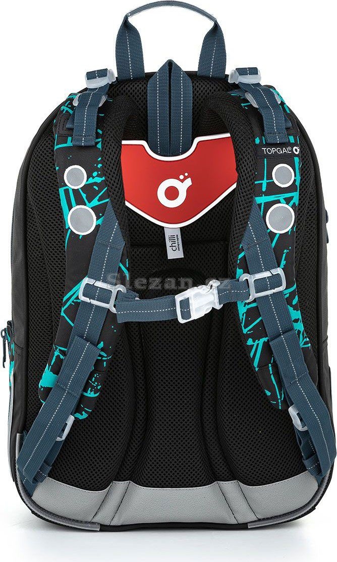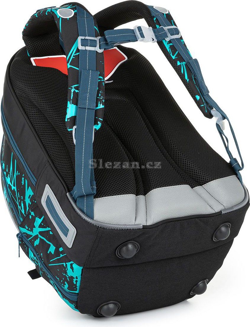Dvě hlavní komory jsou dost široké, objemné, pojmou všechno potřebné učení na prvním stupni ZŠ. Do zadní užší komory umístěte ty nejtěžší učebnice, nebo desky na sešity. Přední komora je o něco širší než zadní, najdete v ní jmenovku a menší síťovou kapsu na zip.