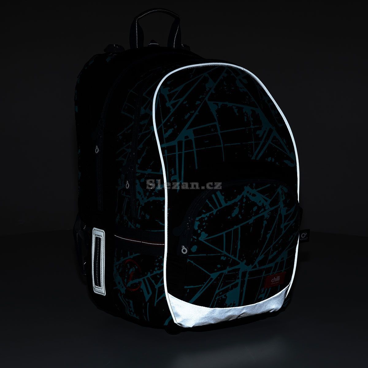 Model KIMI je opatřen řadou reflexních prvků na všech stranách batohu. Zkontrolovat si tuto skutečnost můžete v detailních fotkách, kde jej máme vyfocený ve tmě.