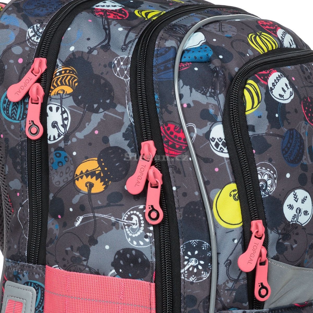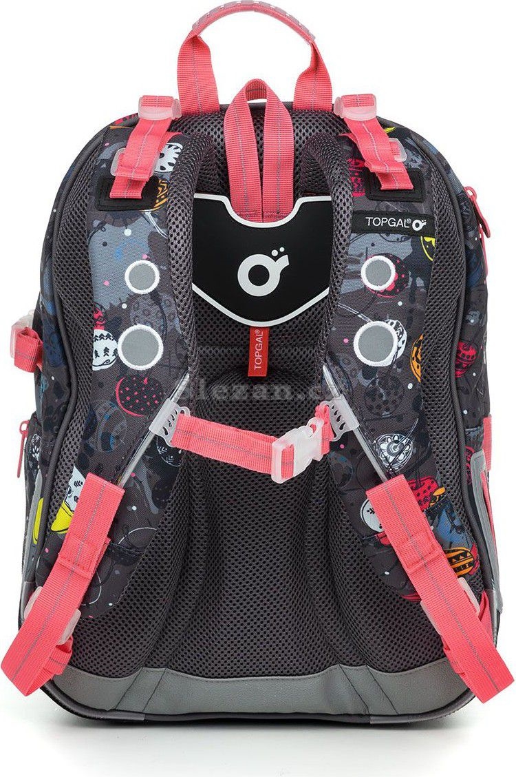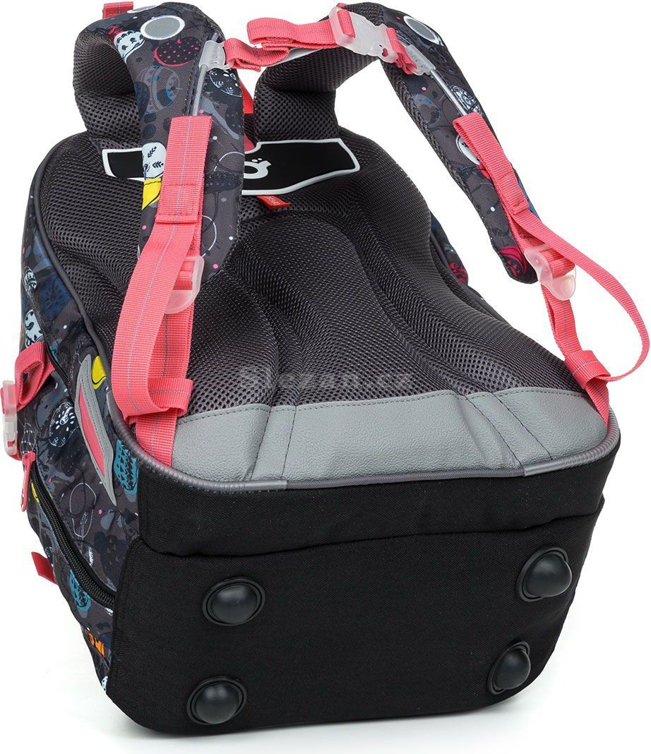 Batoh je objemného střihu, dvě hlavní komory unesou vše, jen radíme to nejtěžší učení dávat vždy nejblíže zádům. V přední širší komoře je malá síťová kapsa na zip a jmenovka. Na čele batohu jsou pak dvě praktické kapsy. Do obou se pohodlně vejde naše krabička na svačinu, nebo penál PENN 19007 ve stejném designu. V horní kapse je navíc karabinka na klíče.
